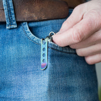 Constructed of hardened spring steel, the Male Pocket Clip uses the same cutting-edge modular attachment as Keyport Modules. It was created exclusively for the Keyport Pivot 1.0 or 2.0 by welding the original Anywhere Pocket Clip to the metal plate used on our Keyport Modules.