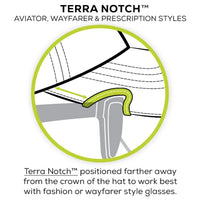 The Terra Notch™ is designed to work with most aviator or fashion style sunglasses as well as prescription eyewear. These styles are more squared off at the corners, causing the frame to sit further away from the face.